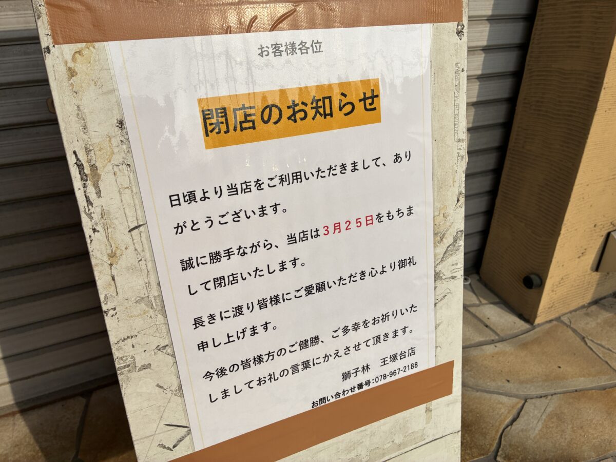 西区・王塚台の『獅子林』が閉店しています。ラーメンや餃子、長崎ちゃんぽんなどが楽しめたお店です。