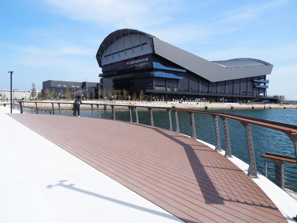 新アリーナができた新港エリア。第1、第2突堤間の整備工事も終わり、憩える場所になってます。