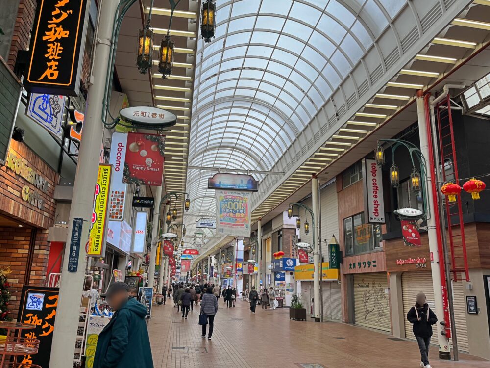 東側はこのような感じです。「文具サワタニ」や「フルーツショップサンワ」があるあたり。