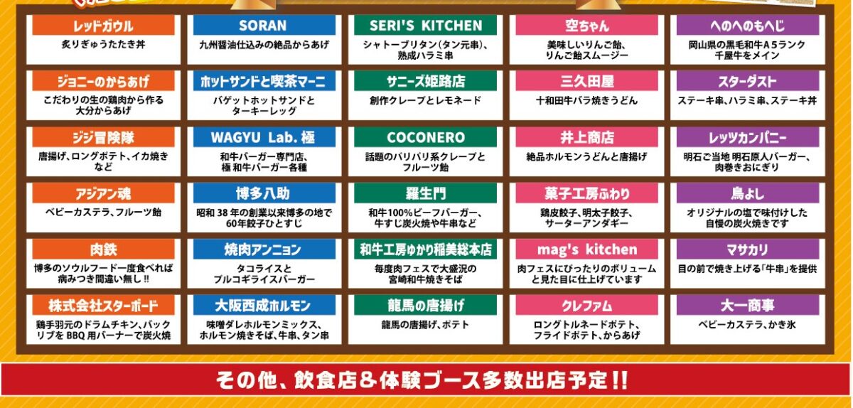 そのほかにも飲食店や体験ブースが多数出店するそうです。