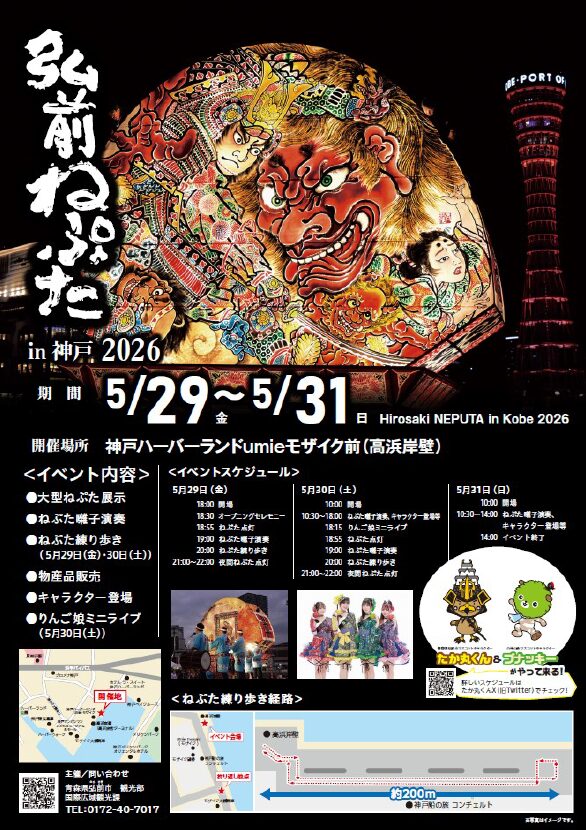 「弘前ねぷた in 神戸2026」は、2020年3月に神戸~青森間にフジドリームエアラインズの直行便が就航したことをきっかけに、2022年から毎年開催しているイベント。今年で5回目を迎えるそう。