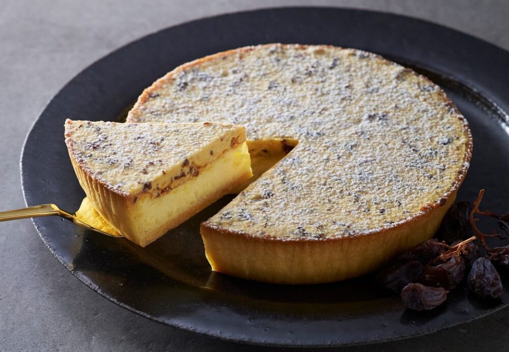 キャラメル風味のバタークリームにラムレーズンをたっぷりと加え、レモンが効いたデンマーククリームチーズケーキに合わせました。濃厚な2層の味わいが楽しめるチーズケーキです。