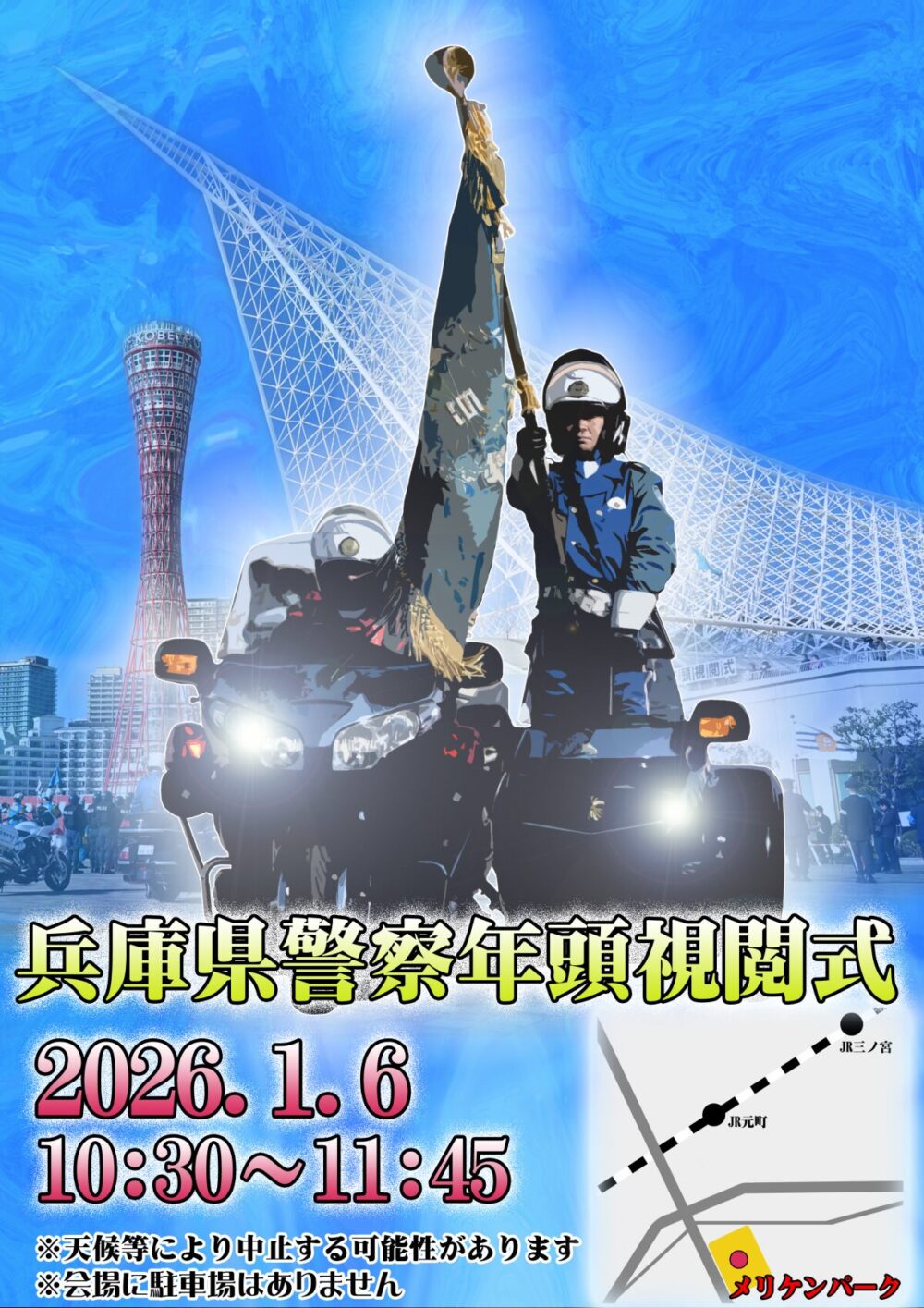 メリケンパークで、治安秩序の維持、体感治安の実現を目的に警察官の士気を高めるため、年頭視閲式が行われます。