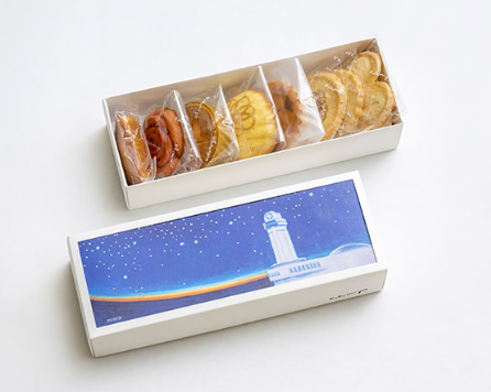 1957年に明石で生まれた洋菓子店で、現在店舗は明石に3つ・札幌に1つのみ。焼き菓子が8個入った「おたより」という名の商品の箱には、明石の風景や季節に合わせた可愛らしいイラストが描かれてます。