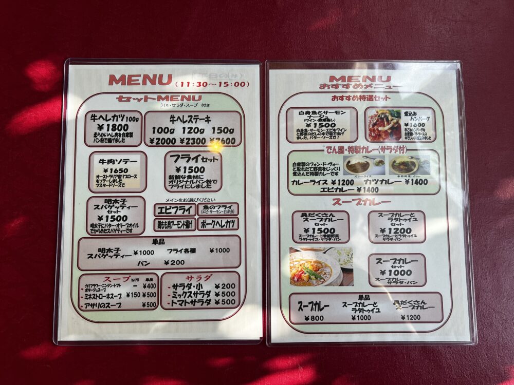 メニューはこんな感じで、洋食メニューやパスタ・カレーなどジャンルに縛られないラインナップとなっています。