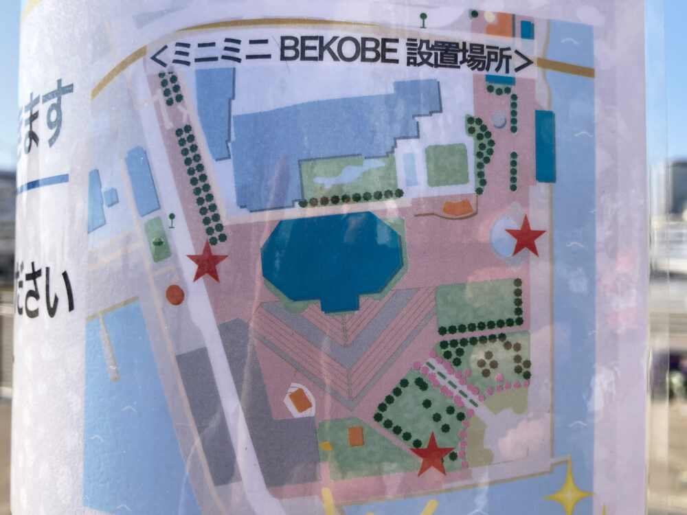 東側の「ミニミニBE KOBE」は、「ジーライオンアリーナ」などがある新港町や「噴水広場」が見える場所に設置されてます。