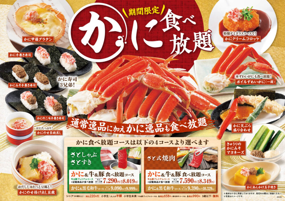 【さとしゃぶ・さとすき かに&牛&豚食べ放題コース】大人1人 8,019円(税込)
