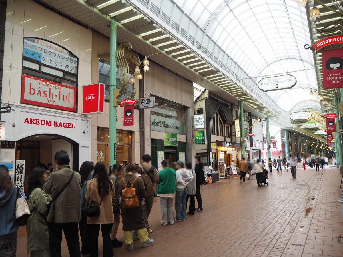 お店があるのは「神戸風月堂」やデンマークチーズケーキの「観音屋」がある元町商店街の3丁目エリアです。隣には「二つ茶屋」なども。