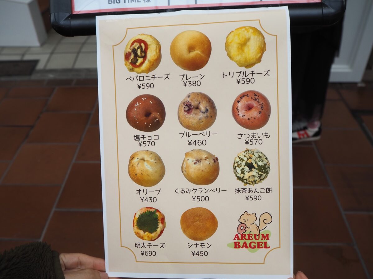 『AREUM BAGLE』は韓国から上陸したベーグルのお店で、もっちりむちむちな食感が特長みたいです。甘いものからしょっぱい系まで、いろんなメニューがあります。