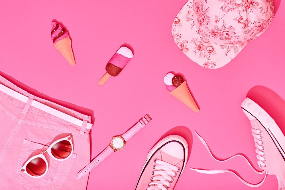 イチゴカラー(赤やピンク)のアイテムを身につけて来店