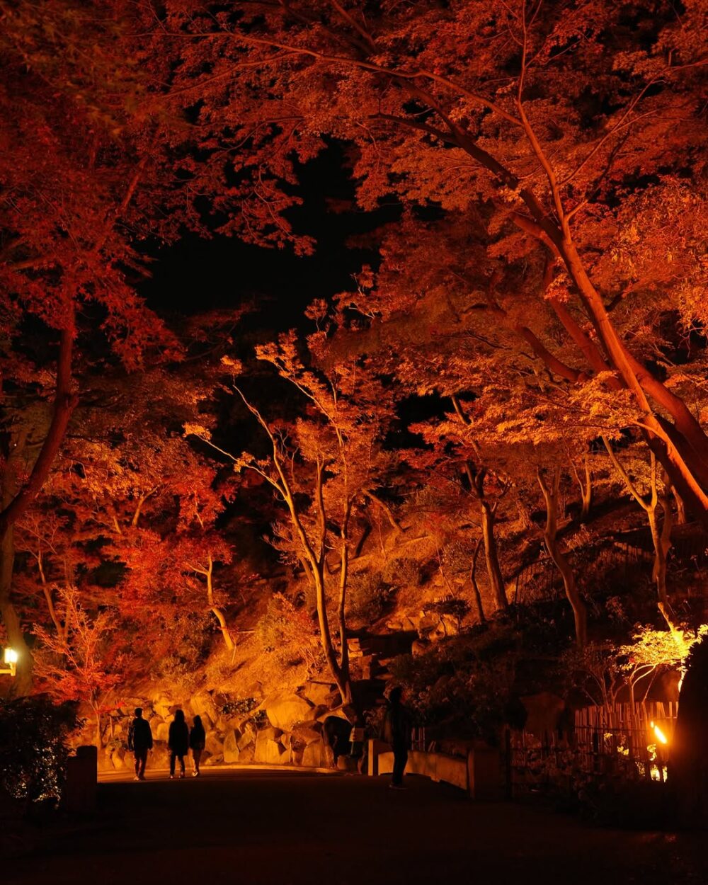 11月8日(土)~12月7日(日)には「もみじ観賞会」が開催され、期間中の土日祝は20:00まで延長開園し、紅葉の「ライトアップ」や「イルミネーション」を楽しむことができます。ライトアップされた紅葉が生み出す幻想的な雰囲気は、まるで別世界なんだそう。