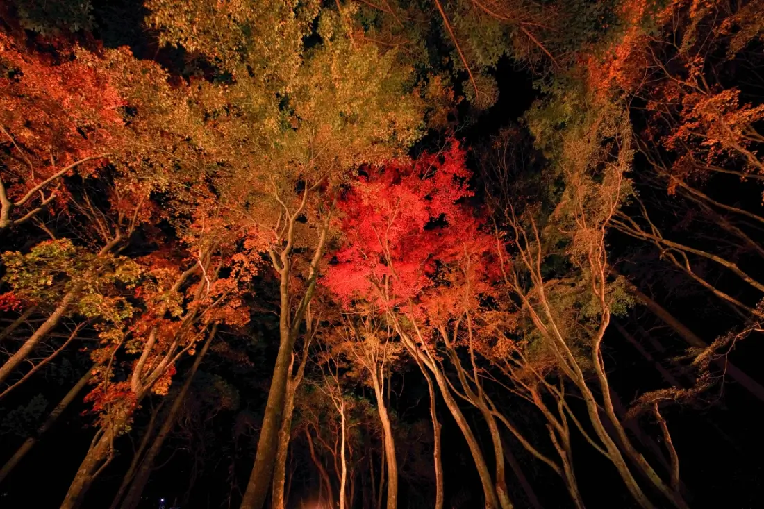 10月25日(土)~ 12月7日(日)の期間は「森林もみじ散策」が開催中。案内スタッフのガイド・解説が聞ける「もみじ森林ガイドツアー」や「森の演奏会」などのイベントが実施されるほか、11月3日(月)~12月7日(日)の土・日・祝日は開園時間が延長となり「夜間のライトアップ」も行われます。