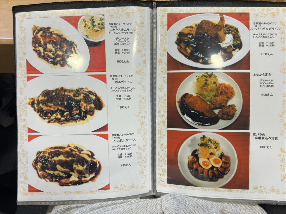 「ふわとろオムライス(1000円)や「和牛ミンチカツチーズオムレツ定食(1080円)」「くまスペシャル(1700円)」など1000円台のメニューが多く、写真に載っていないメニューやトッピング、期間限定メニューなども。来年3月頃まではカキフライも楽しめるみたいです。