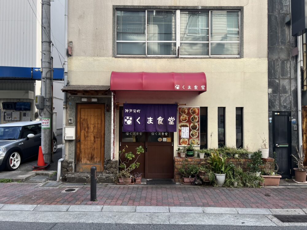 元町商店街の1本山側、元町北通りを歩くと和定食が出てきそうな風貌の暖簾に「くま食堂」と書かれたお店を発見。
