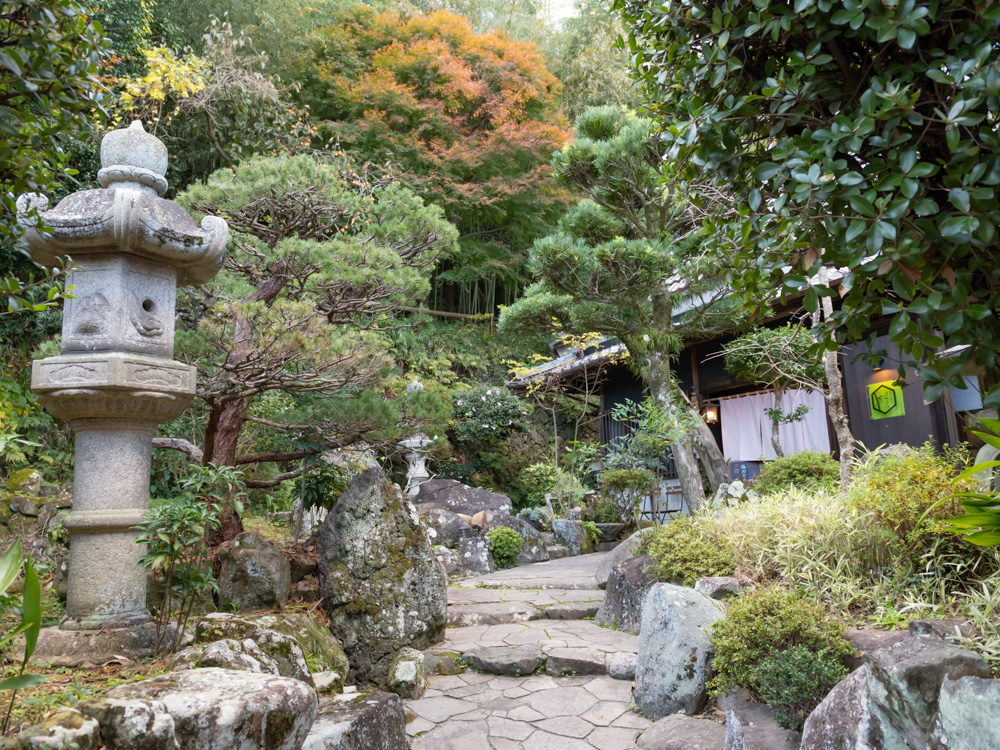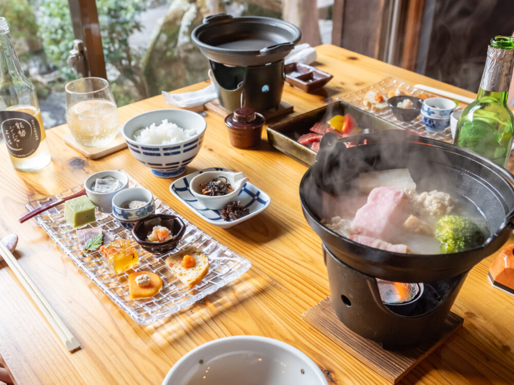 築200年の古民家と竹林をリノベーションしていて、店内にはテーブル席のほか、囲炉裏を囲んだ座敷もあります。