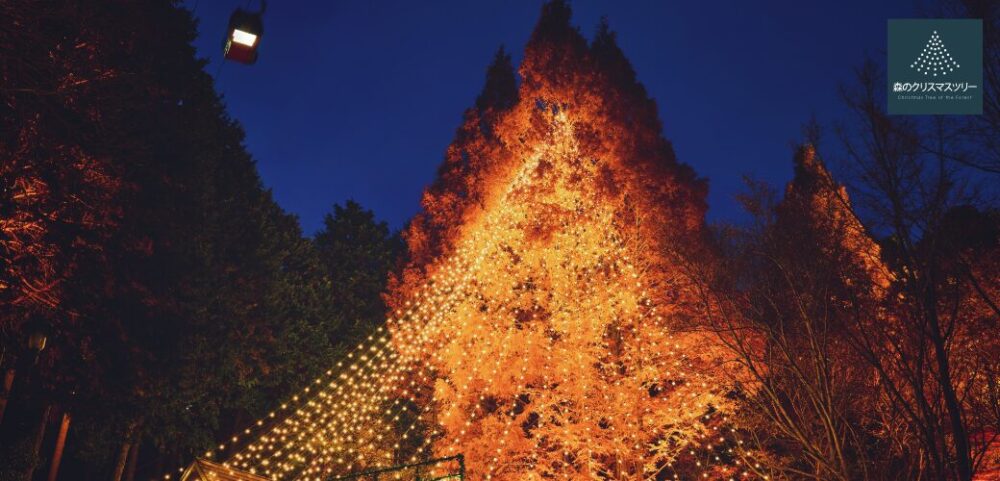 クリスマス時期のハーブ園のシンボル「森のクリスマスツリー」は、高さ25mのメタセコイアを、約1600球の電球で装飾しています。