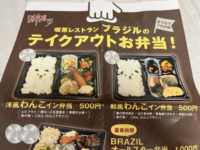 喫茶レストラン「ブラジル」ではテイクアウトも行っていて、なんとワンコイン!安すぎる価格にびっくりです。売り上げの1部を日本動物福祉協会に寄付もしているそう。
