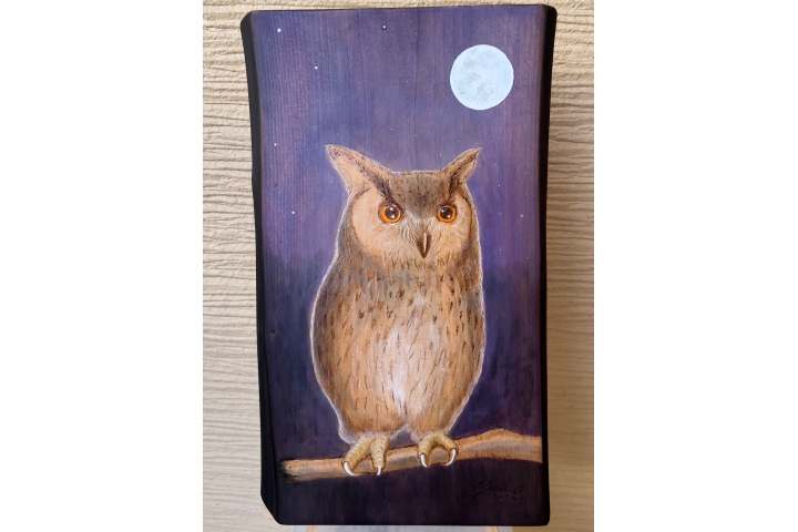イチョウの木に焼きごてを使って絵を描く、焼き絵ならではの深みと立体感。