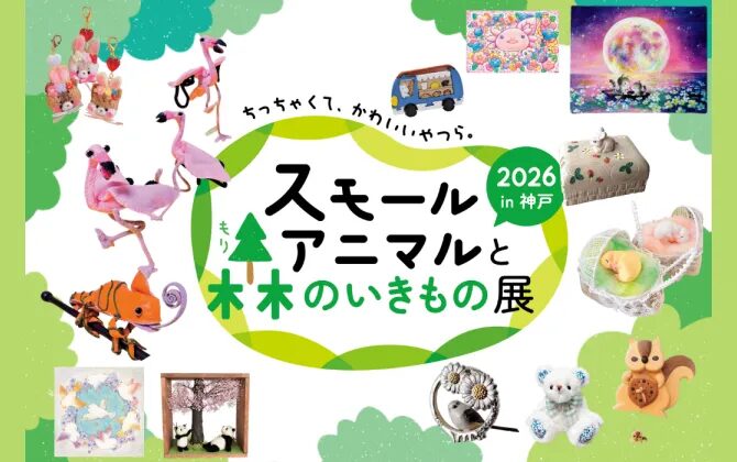 神戸阪急で、アニマル・森に住むいきものをテーマにした「雑貨」「絵画」など1万点以上が並ぶ『スモールアニマルと森のいきもの展』が開催されます。