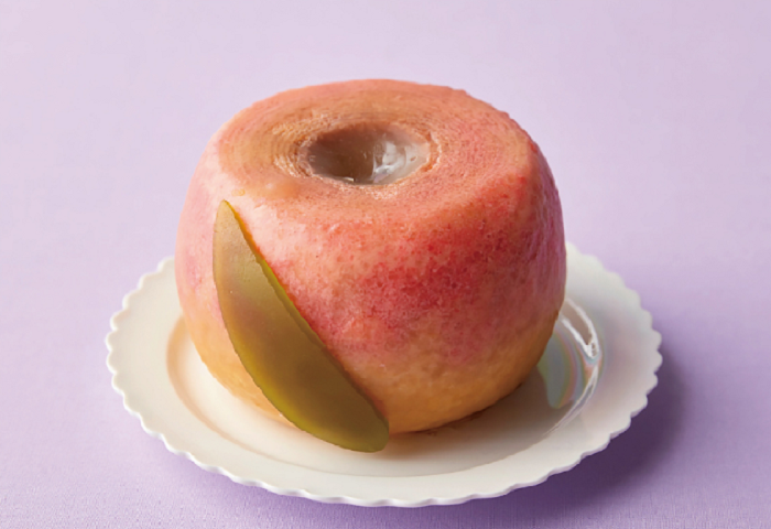 熟した白桃ピューレの「羊かん」で包んだ、見た目も味も「桃」仕様のバウム。