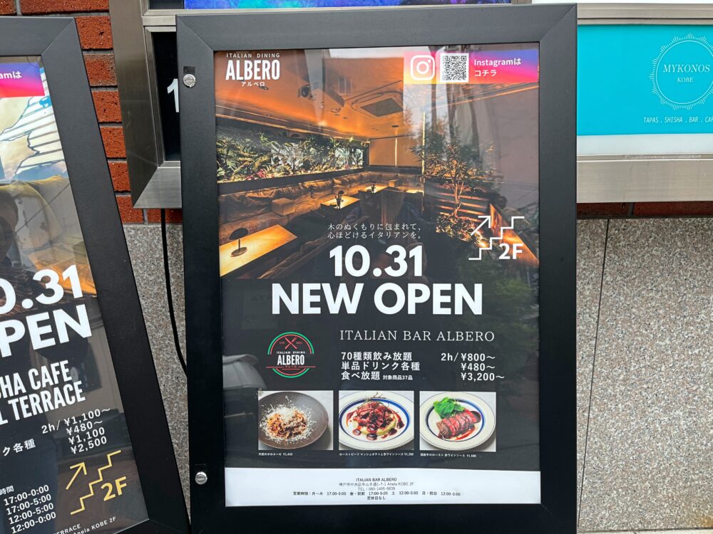 地下鉄三宮駅から北に1分ほど歩いたところに、イタリアンレストランがオープンしています。