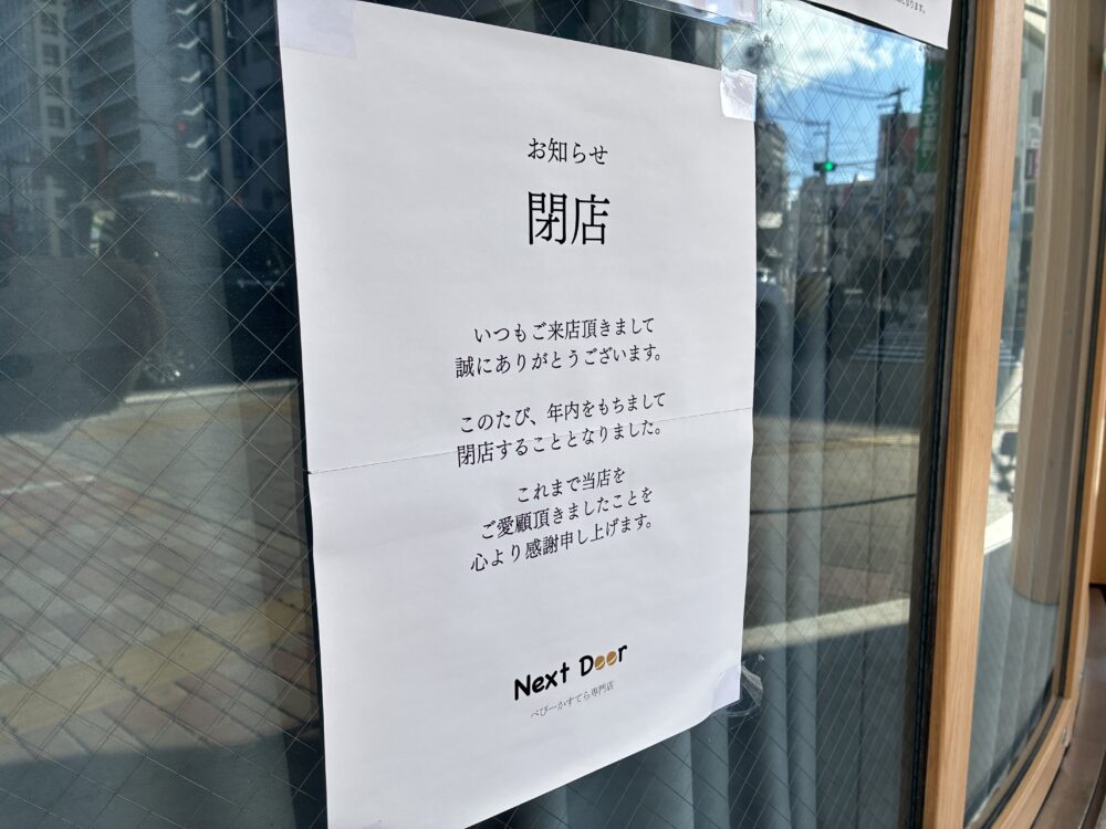 明石駅から5分、ベビーかすてら専門店『Next Door』が昨年末で閉店しています。