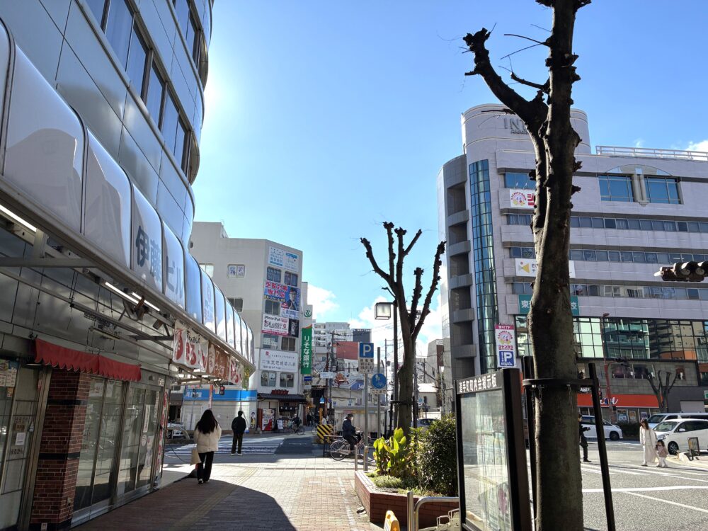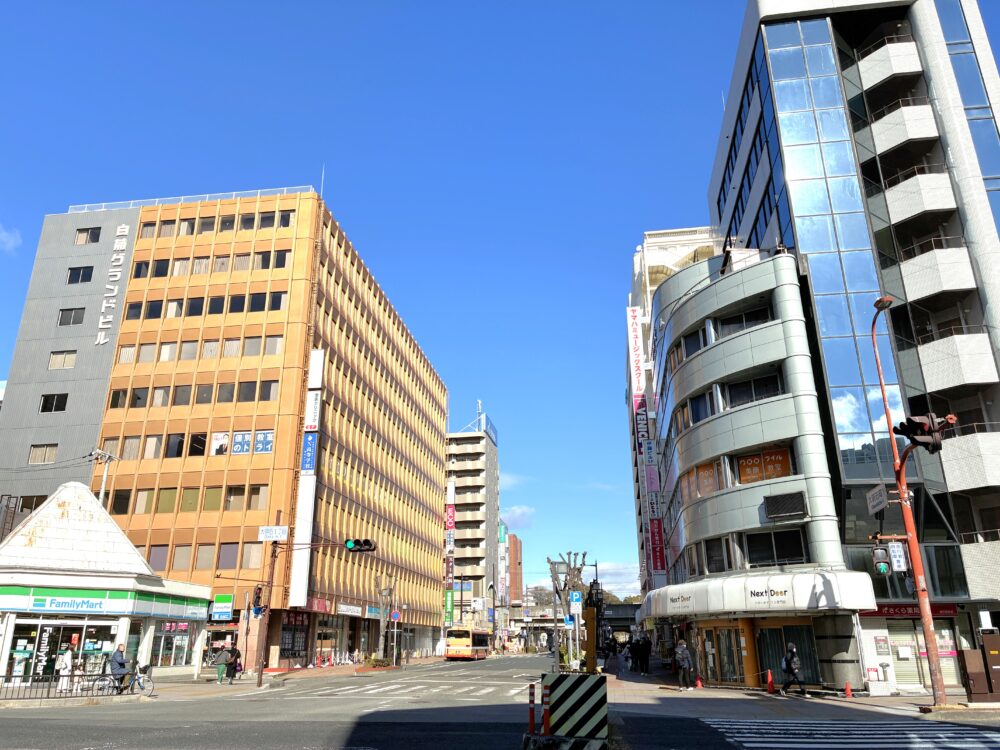 お店があったのは、駅から見て南西側。大きな交差点の一角に位置し、向かい側には「ファミリーマート」があります。