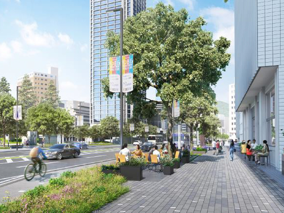 フラワーロードは、「三宮駅」と「ウォーターフロント」をつなぐ部分の「にぎわい創出」と「神戸のシンボルロードに相応しい都市空間を形成」を目的に、再整備が行われています。