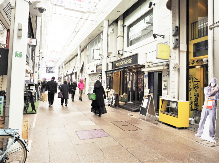 西側を向くと、こんな感じ。近くには、「たこ焼 たちばな センター街店」や「三宮一貫樓本店」があります。