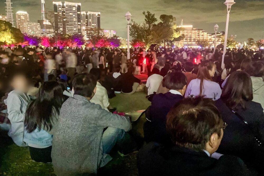メリケンパークでのカウントダウンのアナウンスが、潮風に乗って小さく聞こえてきます。いよいよ打ち上げが始まりました。