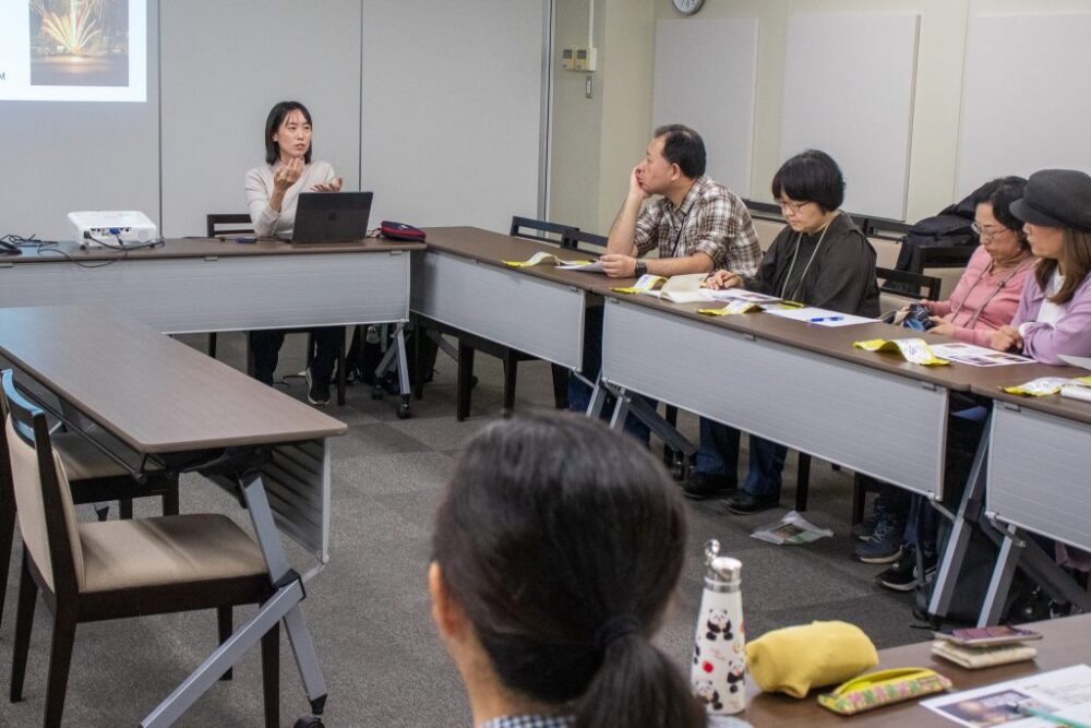 いきなり撮影場所に集合ではなく、まずは室内で座学。講師の木村さんが、花火撮影に適したカメラの設定や気をつけるポイントを教えてくれます。