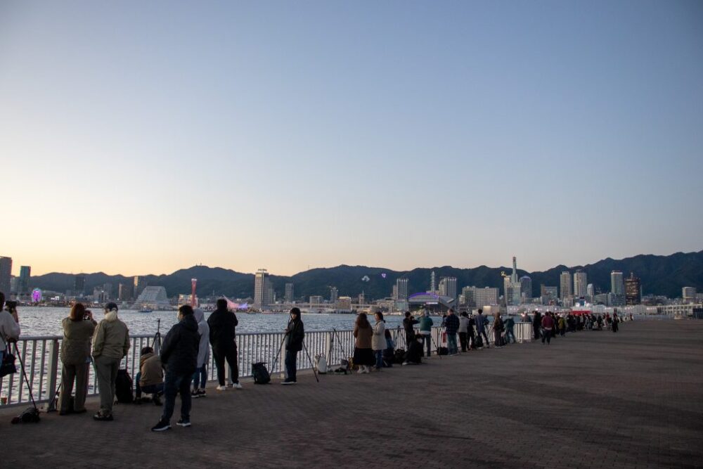 お祭り!浴衣!という意気込んだ感じというより、日常生活の延長として花火が自然に溶け込んでいる様子が、神戸らしいなと感じます。