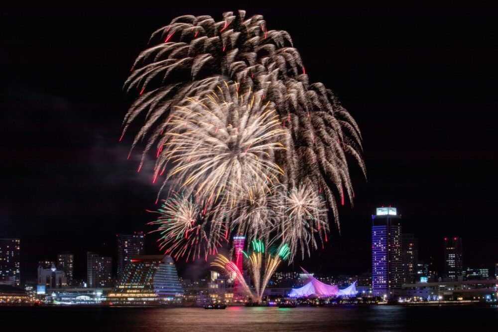 コロナ後から複数日の開催になった、神戸の花火大会。コロナ前の「みなとこうべ海上花火大会」から、現在は「みなとHANABI 神戸を彩る5日間」と改称されています。