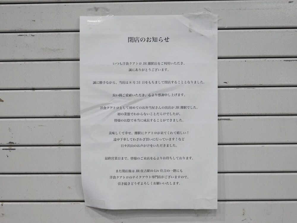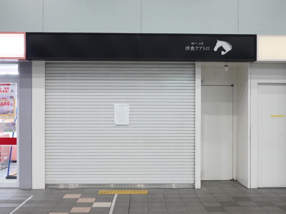 JR灘駅の構内にあった『洋食クアトロ』のテイクアウト専門店が、2025年8月31日(日)をもって閉店しています。