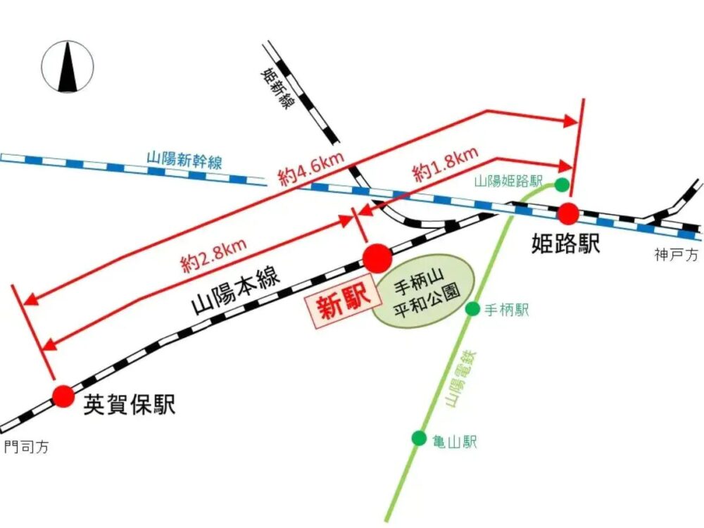 手柄山平和公園駅が設けられるのは、JR姫路駅と英賀保駅の間。この2駅の駅間距離は姫路市内で最も長い約4.6kmあり、市内の平均2.1kmと比べて2倍以上だったんだそう。