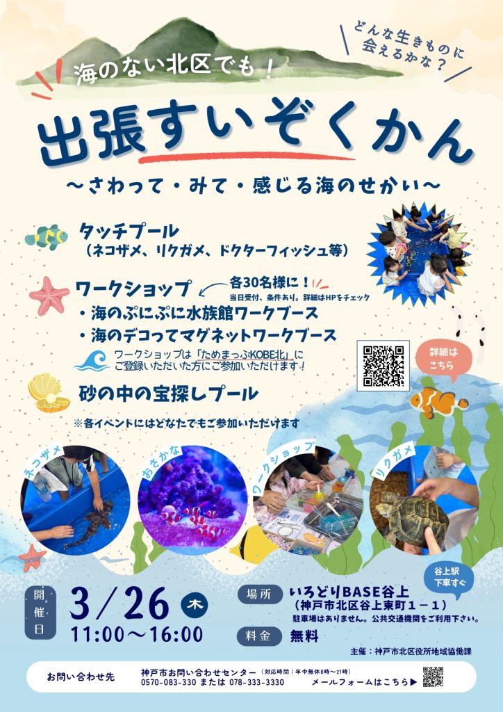 北区に、1日限定の『移動水族館』が開設され、海水魚・淡水魚の「展示」や「ふれあい体験」など、海の世界を身近に感じられる「イベント」が開催されます。