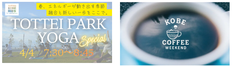 大人気「TOTTEI PARK YOGA」や、「KOBE COFFEE WEEKEND」も4月4日(土)に開催されます。