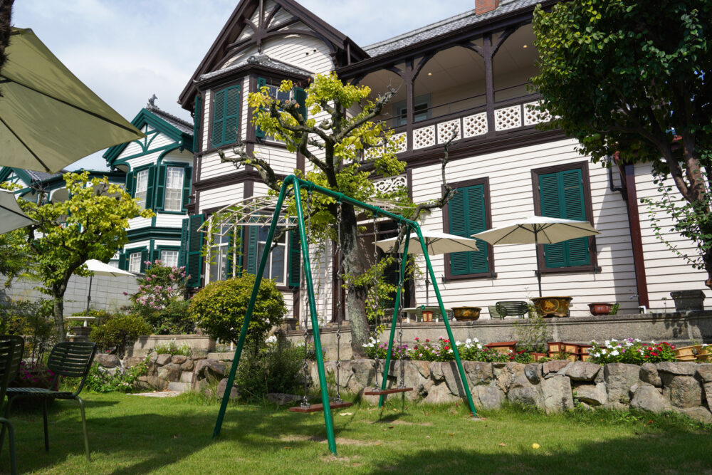 「旧ディスレフセン邸」。右隣は異人館「シュウエケ邸」
