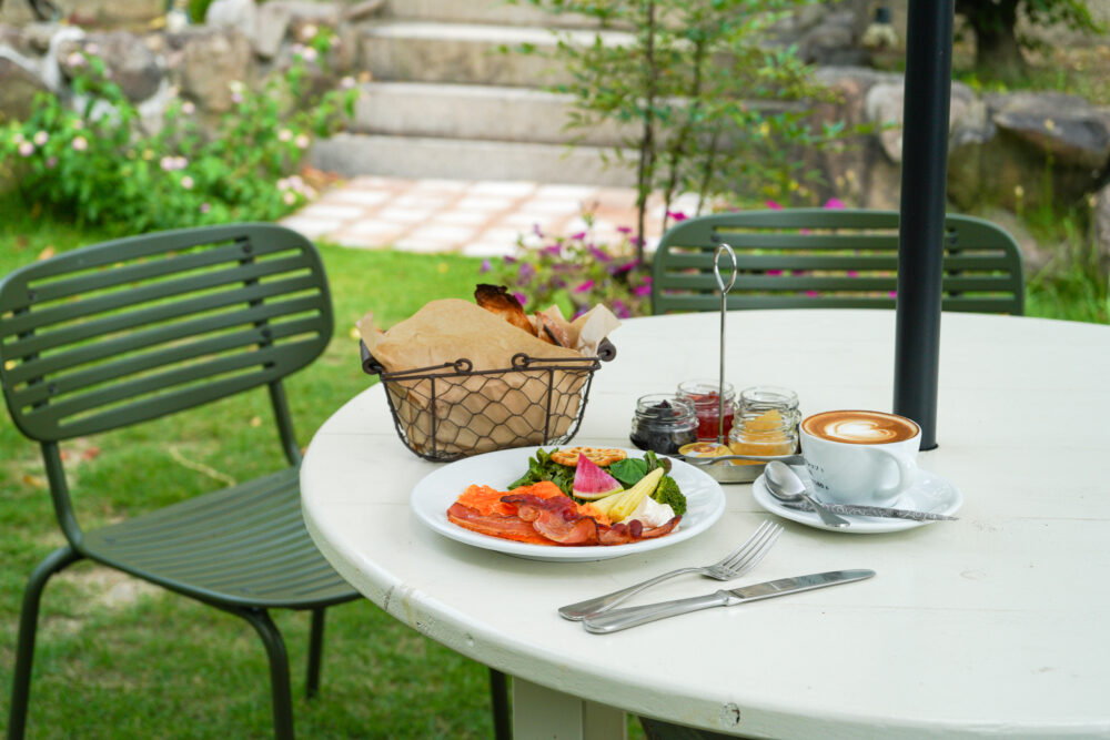 裏手には、芝生のガーデン。こちらはペット同伴も可能で、心地よい風を感じながら朝食を楽しむことができます。