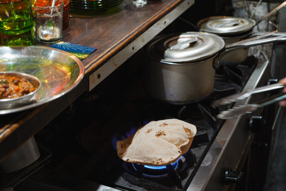 焼き上がるとふっくらと膨らみ始め、香ばしさが広がるチャパティ。熱々をちぎってカレーと一緒に食べると、思わず笑顔になる美味しさです。
