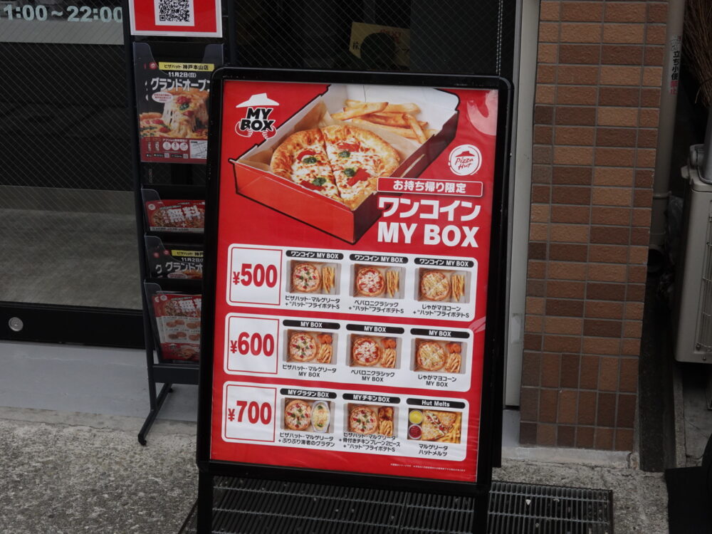 そのほか、お持ち帰り限定で、「ワンコインMY BOX」といったメニューもあるみたいです。500円から、ピザ1枚とフライポテトをセットで食べられるのはお得ですね。