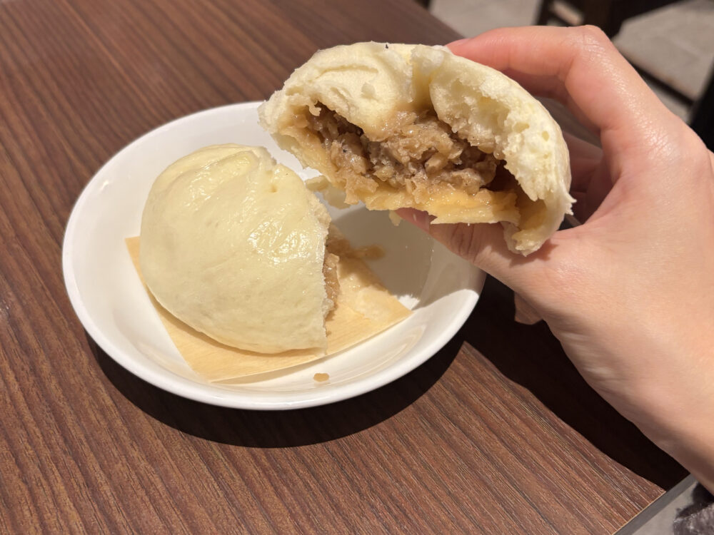 豚まんは、出来立てアツアツでお肉がたっぷり。ごろっとしていて「肉肉しい」です。