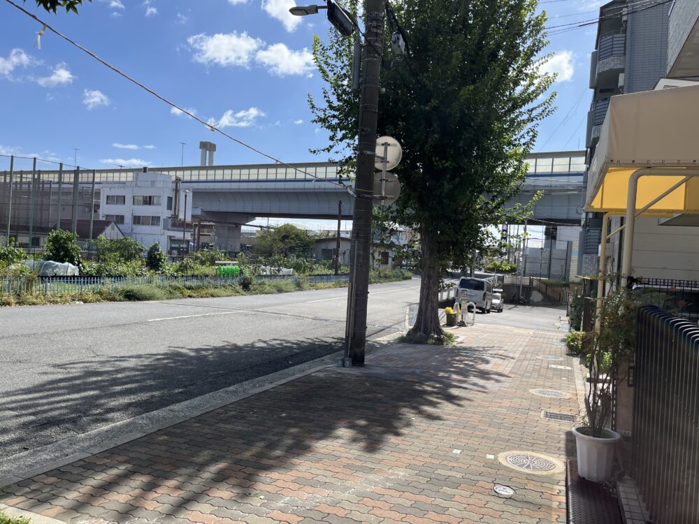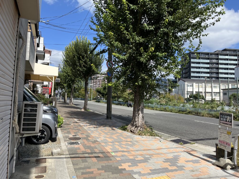 場所は、阪神大石駅を降りて南側へ2分程歩いたところ。目の前には「都賀川」が流れており、南側を向くとすぐ近くには「国道43号線」や「阪神高速3号神戸線」が見えます。