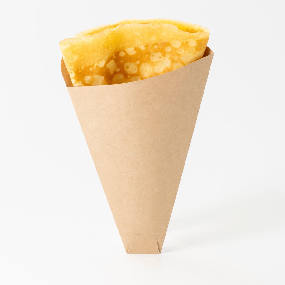 バウムクーヘンの生地を使ったもっちりとしたクレープ。