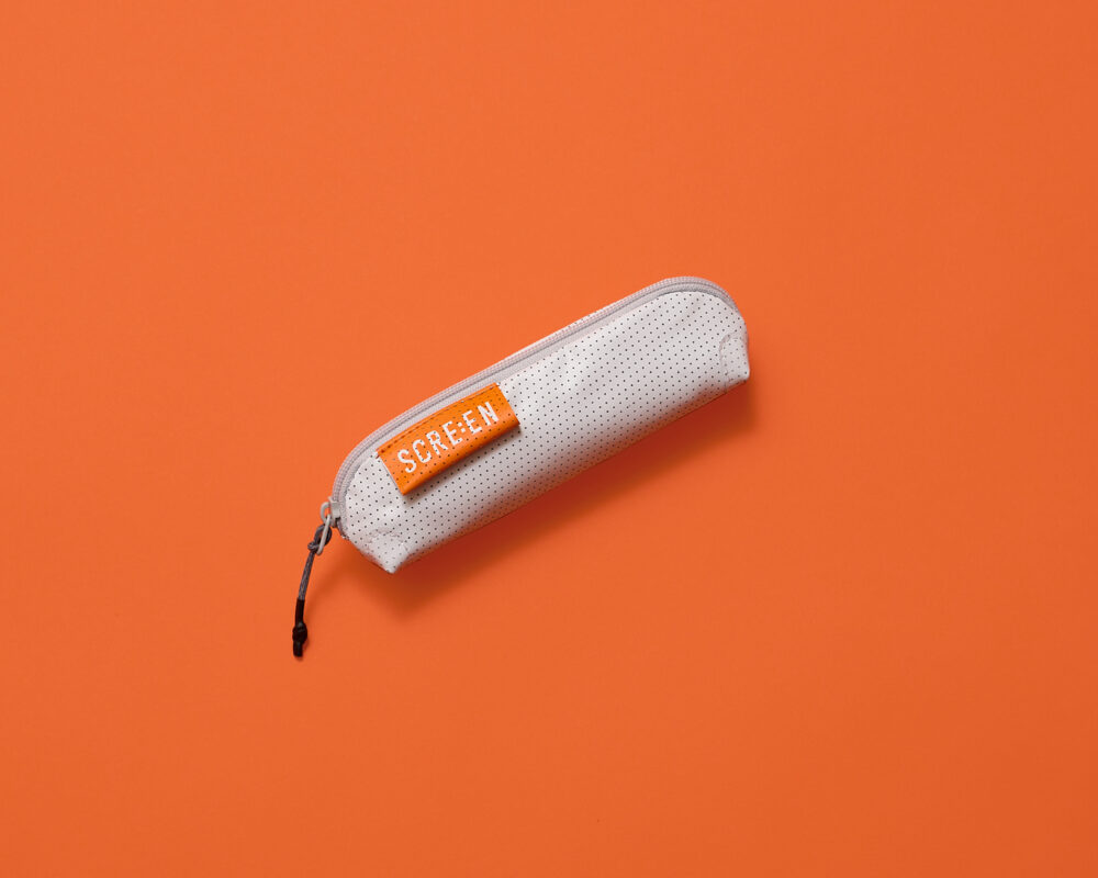 デスク周りの文具やガジェットを収納できるミニケース。スクリーンならではの張りのある素材を生かして立体的なシルエットだからこそ、自由度の高いケースとして活躍します。