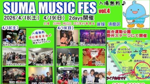 須磨区にある「神戸総合運動公園」で、入場無料・飲食持ち込み自由の『野外音楽イベント』が開催されます。