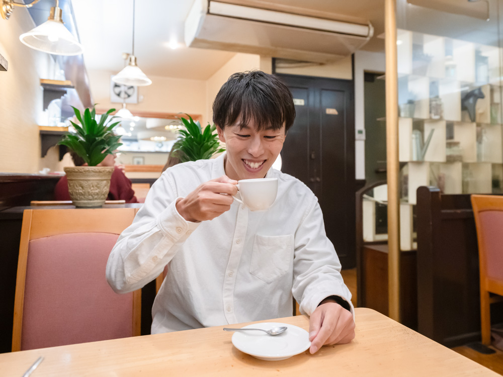 パフェの余韻を味わいながら、コーヒーをいただいてくつろぎます。まったりとカフェタイムを過ごし、エネルギー満タンでお店を出発です!
