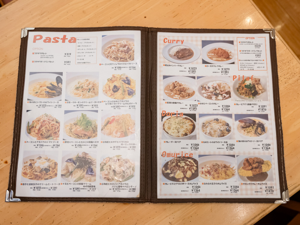 フードメニューは洋食系が充実していて、パスタやカレー、ドリア、オムライスなど、それぞれ数種類の用意があります。