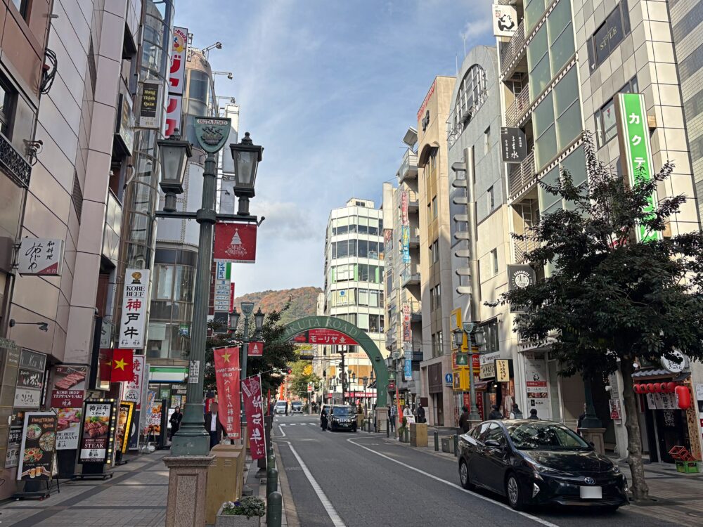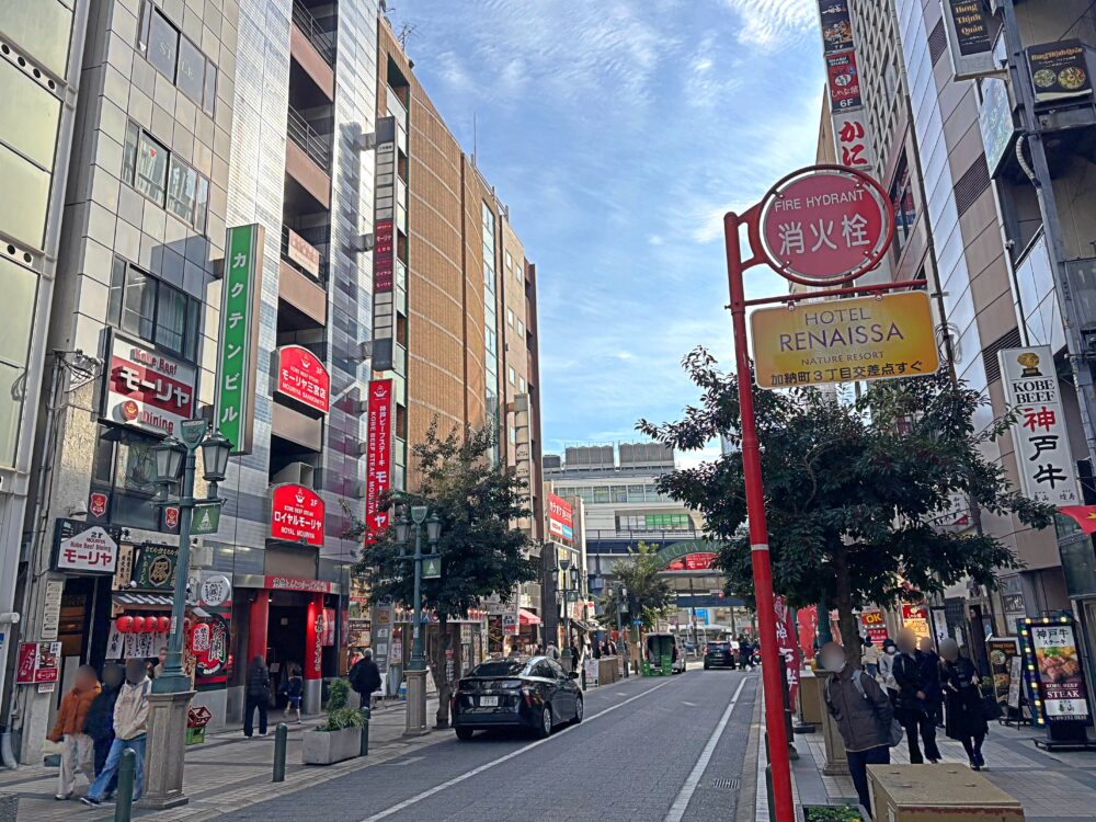 北側を向くと、このような感じ。そのまま北に進むと生田新道と交わり、その先には「生田神社」があります。