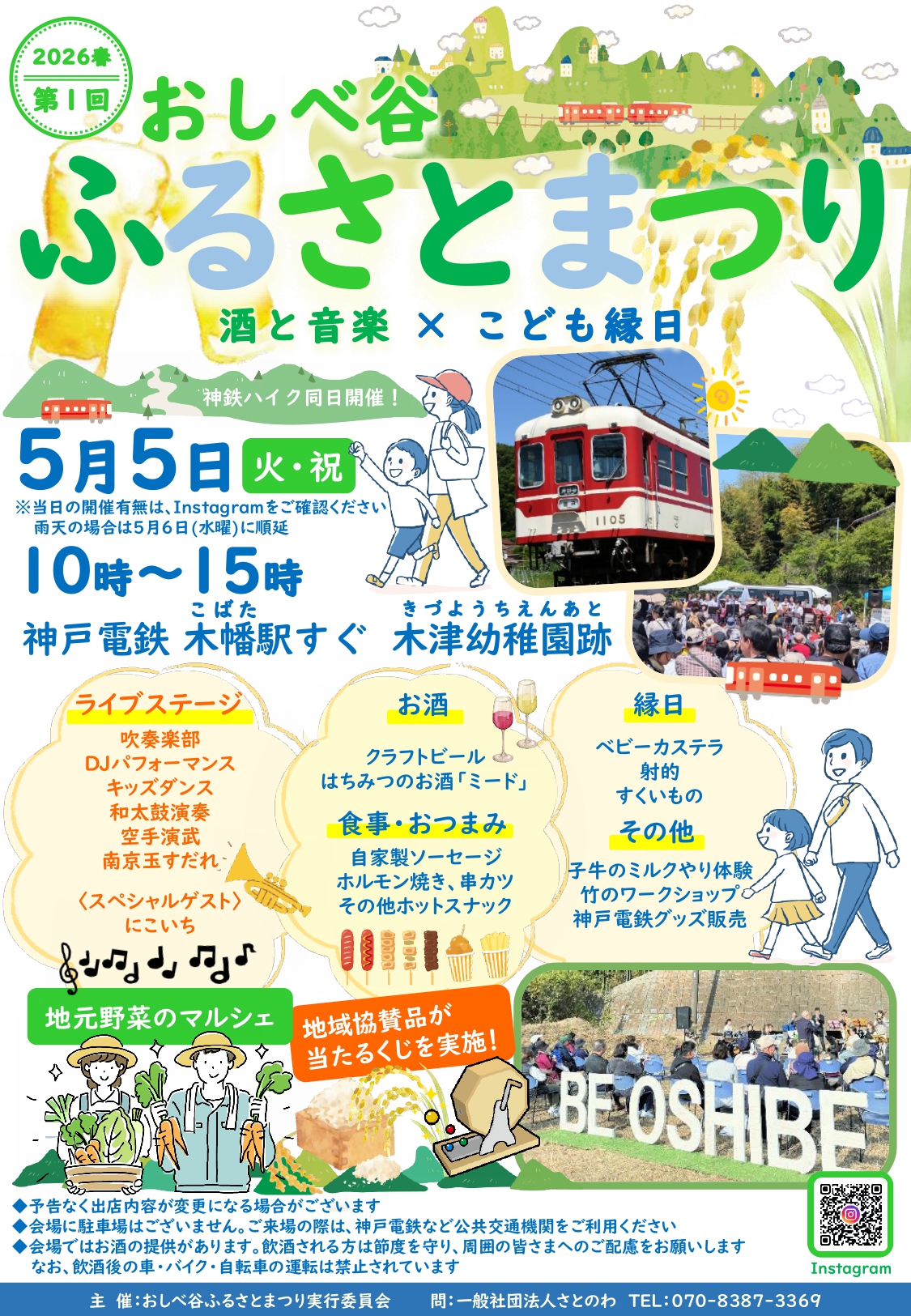 ・小雨決行、荒天延期です。 延期の場合は「おしべ谷ふるさとまつり」の公式Instagramで周知します。